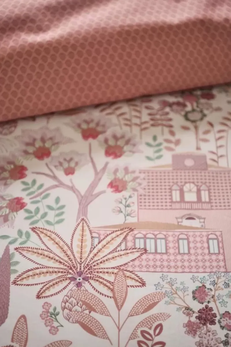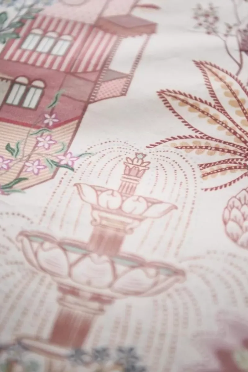 Die Bettwasche Casa Di Pip Schmuckt Ein Frohliches Printmuster Mit Diversen Dekorierten Italienischen Hausern. Die Hauser Stehen Inmitten Von Zypressen, Feigenbaumen Und Eleganten Springbrunnen.