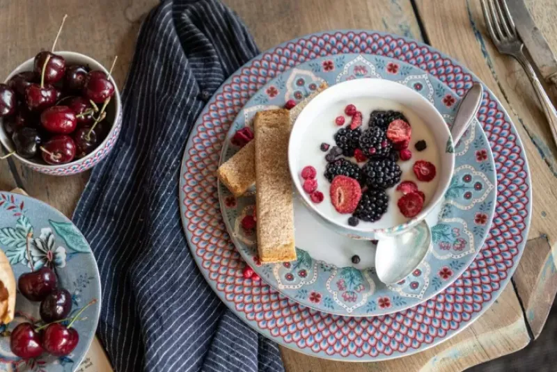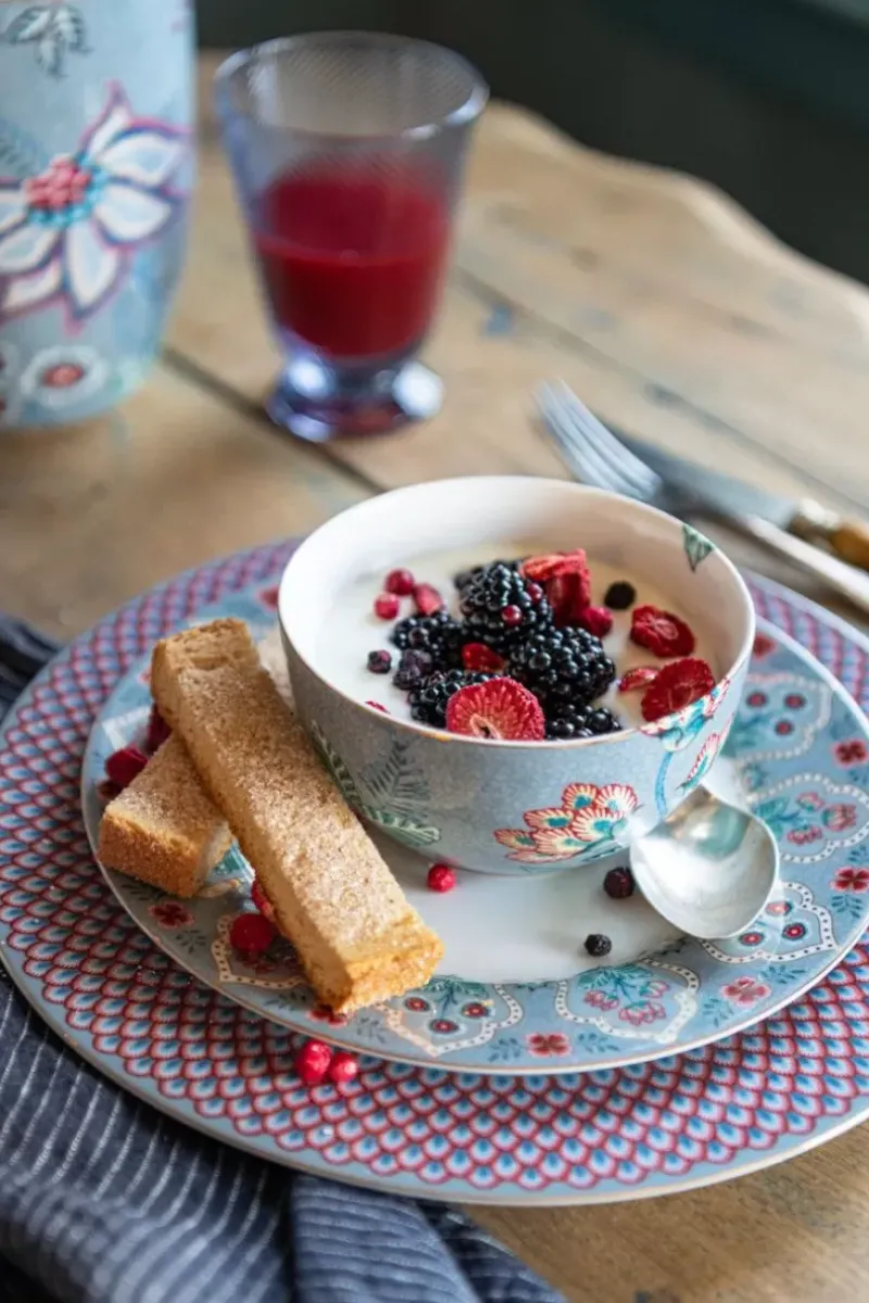 Erganzen Sie Ihr Geschirr Um Diesen Flower Festival Essteller Mit Einem Durchmesser Von 26,5 Cm. Unser Essteller Hat Einen Blauen Hintergrund Und Ist Mit Dem Eleganten Flower Festival Design Dekoriert. Dieses Reiche Blumenmuster Besteht Aus Einer Variation Fantasievoller Chintzblumen In Rot Und Rosa Mit Hellblauen Und Grunen Blattern. Die Spielerisch Platzierten Blutenzweige Mit Aufwendig Verzierten Bluten Und Blattern Machen Dieses Raffinierte Design Zu Einem Besonders Reichen Erlebnis. Unser Flower Festival Porzellan Wird In Ihrem Geschirrschrank Und Auf Ihrem Tisch Strahlen.