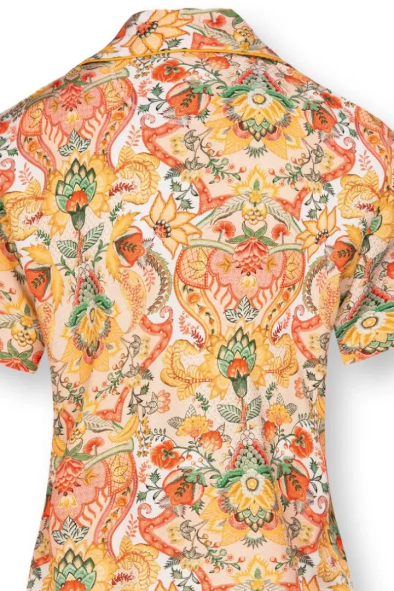 Bevorzugen Sie Einen Lassigen Und Zugleich Modischen Look? Dann Ist Diese Bequeme Floor Bluse In Gelb Eine Perfekte Basis. Dank Des Materials Aus Viskose Fuhlt Die Bluse Sich Sehr Angenehm An. Das Top Ist Mit Dem Kyoto Festival Design Dekoriert. Dieses Sich Wiederholende Blumenmuster Besteht Aus Einer Variation Fantasievoller Chintzblumen Und Blattern. Symmetrisch Platzierte Blumenzweige Mit Aufwendig Verzierten Bluten Verleihen Eine Edle Ausstrahlung. Tragen Sie Zu Dieser Bluse Items Aus Der Neuen Homewear-Kollektion Und Kreieren Sie Eine Wundervolle Kombination.