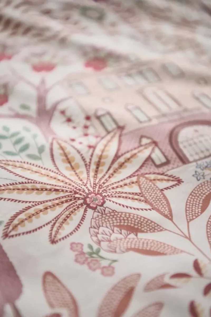 Die Bettwasche Casa Di Pip Schmuckt Ein Frohliches Printmuster Mit Diversen Dekorierten Italienischen Hausern. Die Hauser Stehen Inmitten Von Zypressen, Feigenbaumen Und Eleganten Springbrunnen.