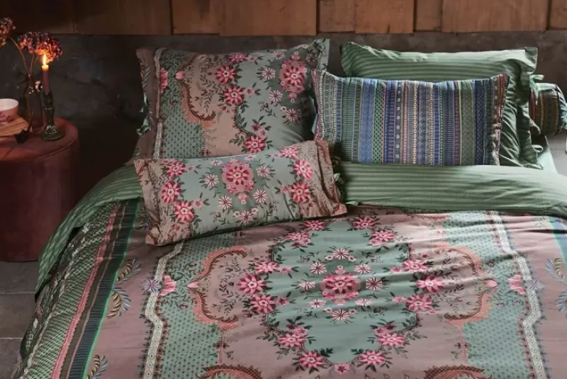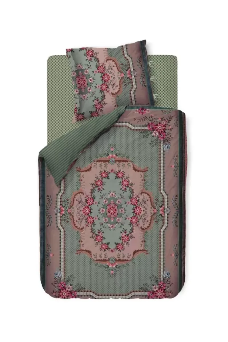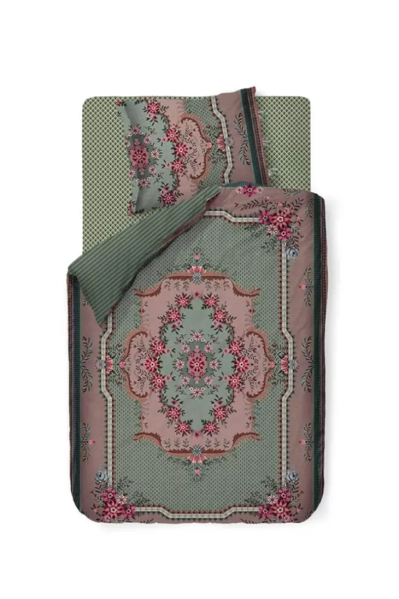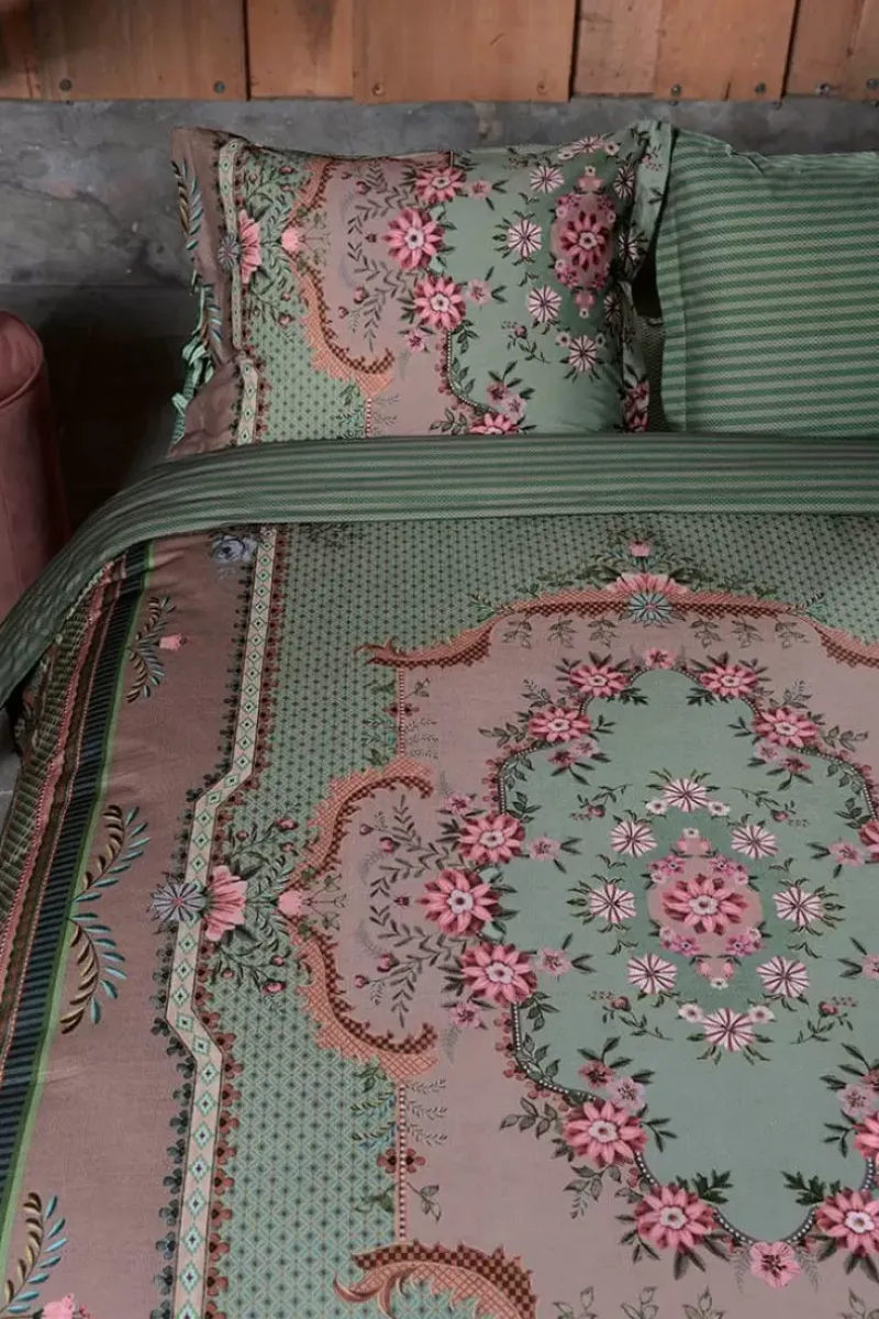 Dieser Schone Bettbezug In Grun Ist Mit Dem Pip Chic-Design Bedruckt. Inspiriert Von Klassischen Teppichen Mit Rosetten, Fantasieblumen Und Einer Variation Aus Bogen, Rauten Und Streifen. Die Bettbezug Hat Eine Oxford-Bordure Und Einen Bindeverschluss. Die Ruckseite Ist Mit Einem Streifenmuster Bedruckt, So Dass Die Bettbezug Beidseitig Verwendet Werden Kann.