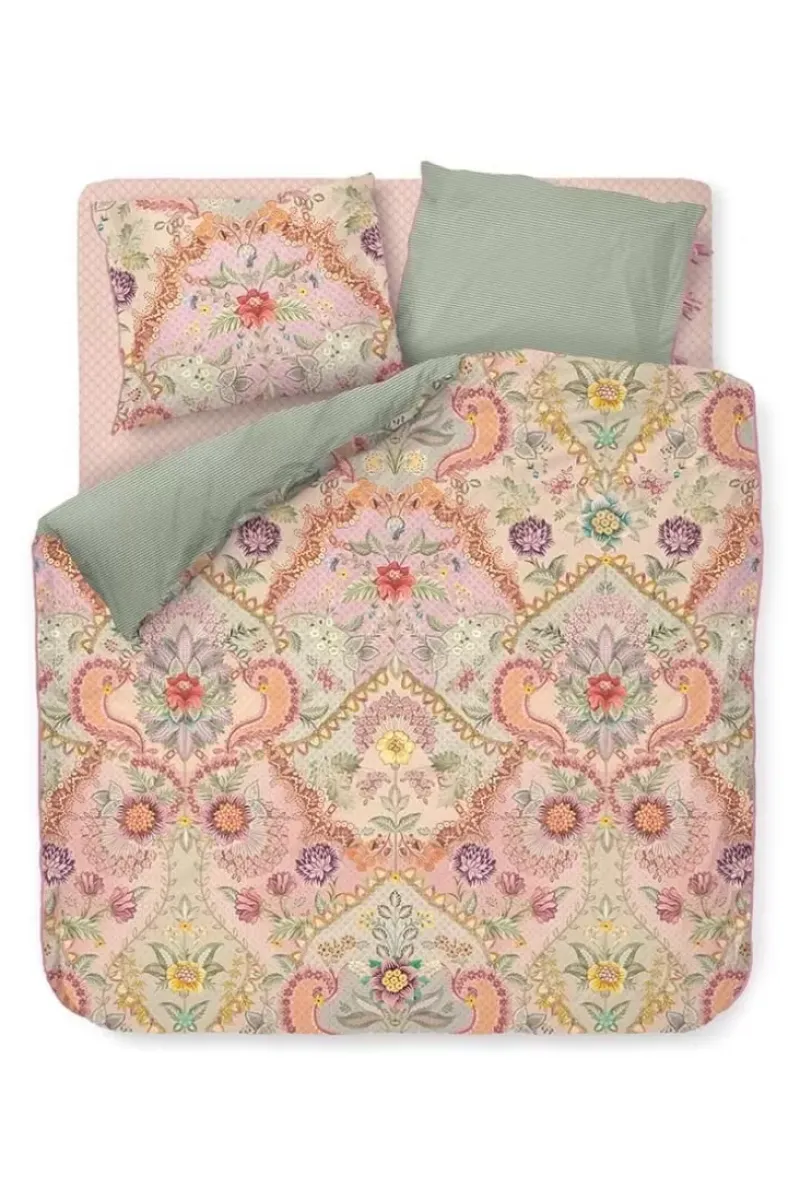 Der Pastellfarbene Bettbezug Saluti Grandi Hat Ein Symmetrisch Aufgebautes Blumenmuster, Inspiriert Von Den Wunderschonen Tapetenmotiven Aus Italien. Die Ruckseite Hat Ein Streifenmuster. Der Bezug Und Die Kissenbezüge Haben An Den Seiten Eine Gesteppte Oxford-Kante, Die Ein Luxurioses Aussehen Verleiht. Die Kissenbezüge Haben Einen Bindeverschluss Und Sind, Genau Wie Der Bezug, Zwei Verschiedene Seiten Und Konnen Beidseitig Verwendet Werden. So Erzeugen Sie Einen Spielerischen Mix & Match-Effekt.