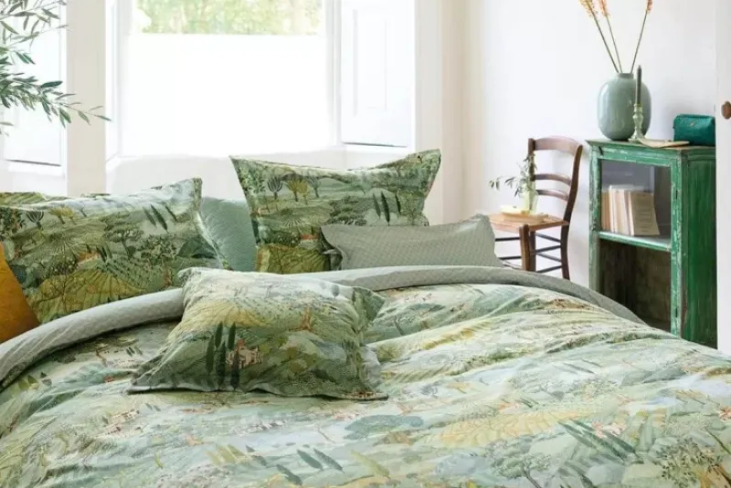 Mit Dem Grunen Bettbezug Toscana Mussen Sie Nicht Mehr In Den Urlaub Nach Italien Fahren. Die Zypressen Und Subtilen Hinweise Auf Die Toskanische Kultur Geben Ihnen Das Gefuhl, Mitten In Der Italienischen Landschaft Zu Sein. Die Ruckseite Hat Ein Muschelmuster. Der Bezug Und Die Kissenbezüge Haben An Den Seiten Eine Gesteppte Oxford-Kante, Die Ein Luxurioses Aussehen Verleiht. Die Kissenbezüge Haben Einen Gepolsterten Knopfverschluss Und Sind, Genau Wie Der Bezug, Zwei Verschiedene Seiten Und Konnen Beidseitig Verwendet Werden. So Schaffen Sie Einen Verspielten Mix & Match-Effekt Auf Ihrem Bett