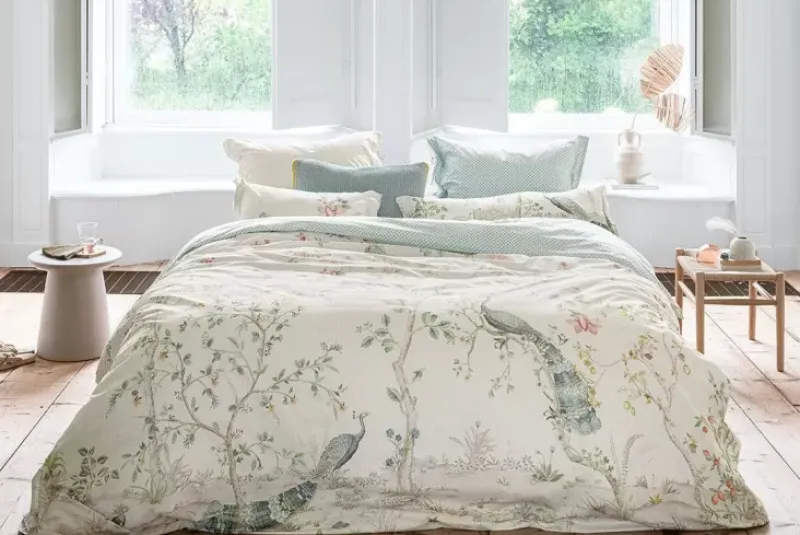 Dieser Romantische, Weise Okinawa Kissenbezug Ist Von Orientalischen Chinoiserie-Prints Inspiriert. Japanische Bluten Verzieren Diesen Kissenbezug. Die Zarte Farbe Dieses Zierkissens Sorgt Fur Eine Ruhige Aber Dennoch Elegante Ausstrahlung Auf Ihrem Bett.