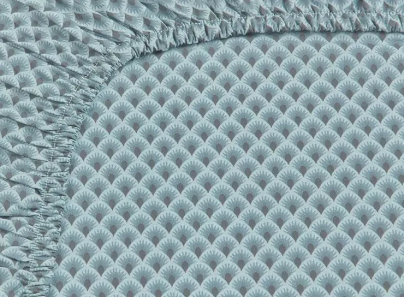 Das Blaue Spannbettlaken Suki Hat Einen Allover-Print Aus Stilisierten Bogen Mit Raffinierten Details. Die Blauen Farbtone Verleihen Diesem Spannbettlaken Eine Reine Und Frische Ausstrahlung. Das Spannbettlaken Vervollstandigt Ihr Bett Und Ist Hervorragend Kombinierbar Mit Einem Passenden Bettbezug.