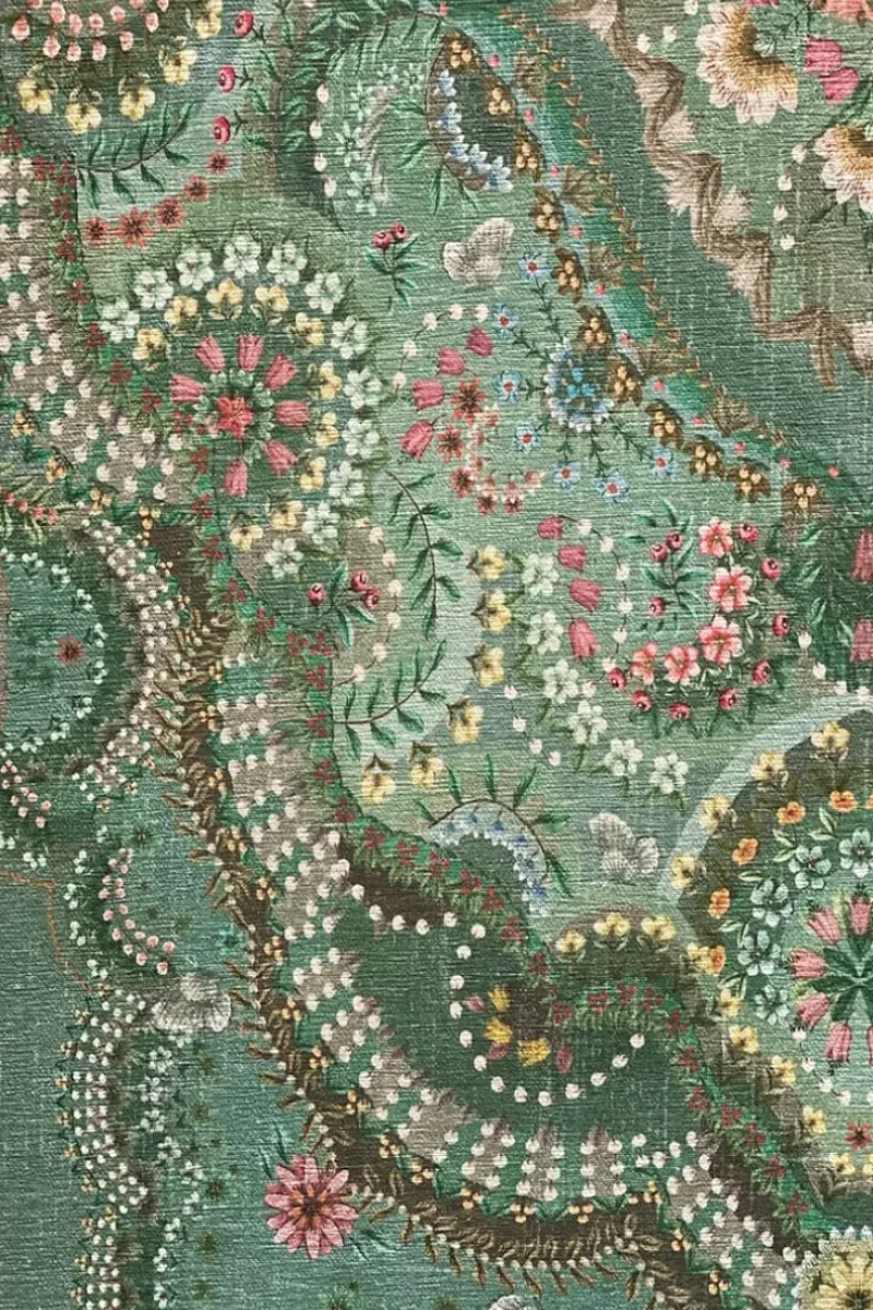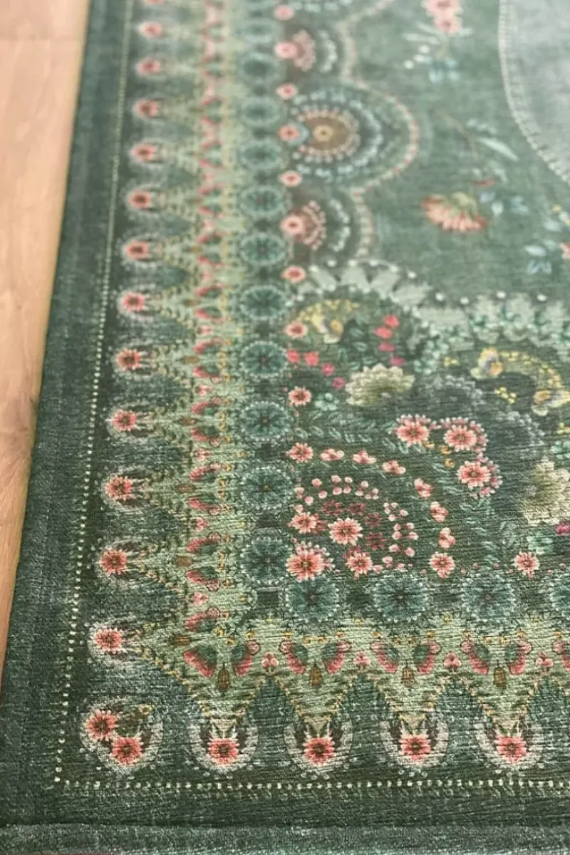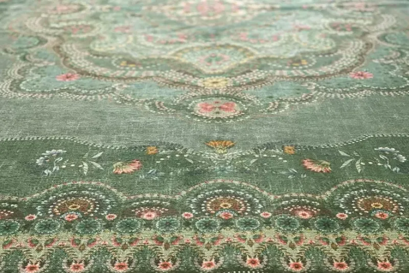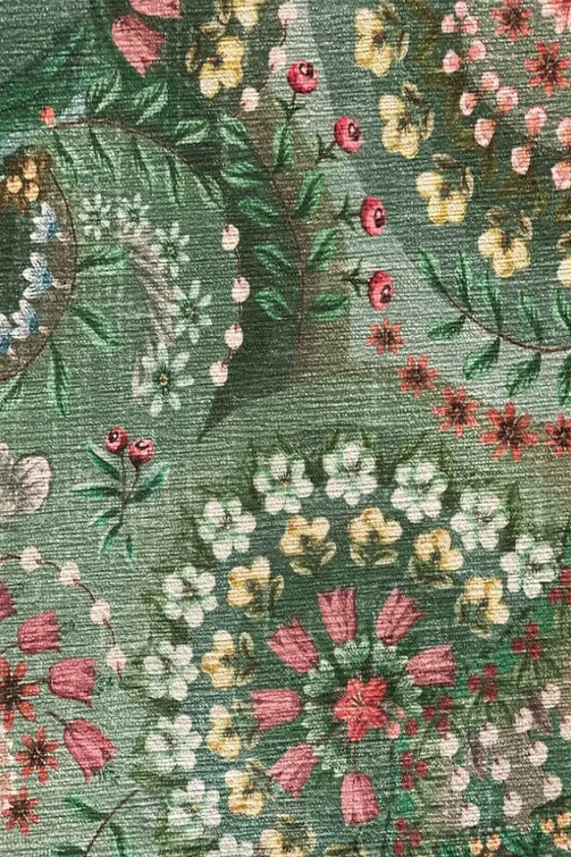 Die Majorelle-Kollektion Wurde Um Einen Schonen Teppich In Der Farbe Grun Erweitert. Bunte Blumen Auf Einem Zart Gefarbten Untergrund Verleihen Diesem Bodenbelag Eine Vintage-Ausstrahlung Mit Einem Modernen Touch. Der Teppich Ist Perfekt Fur Das Wohnzimmer Oder Das Schlafzimmer Geeignet.