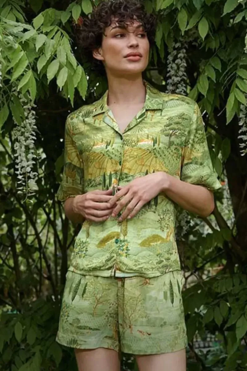 Entspannen Sie Sich In Diesem Top Mit Toscana-Design. Es Ist Ein Kurzarmliges Oberteil Mit Kerbkragen Aus Einem Gewebten, Glanzenden Viskosestoff Mit Einer Ubergrosen Passform. Kombinieren Sie Dieses Oberteil Mit Hosen Oder Shorts Im Gleichen Aufdruck, Um Es Als Komplettes Set Zu Tragen. Oder Kombiniere Das Top Mit Anderen Artikeln Aus Der Neuen Homewear-Kollektion.