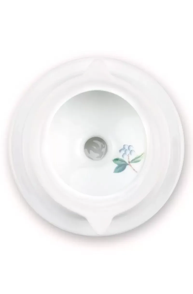 Diese Grose, Blaue Teekanne Ist Mit Exotischen Blumen, Einem Vogel Und Goldenen Details Verziert. Auf Der Unterseite Befindet Sich Ein Detailliertes Dessin Und Der Deckel Ist Mit Einer Rose Aus Porzellan Versehen. Lasst Sich Hervorragend Mit Dem Teegeschirr Aus Der Blushing Birds Kollektion Kombinieren.
