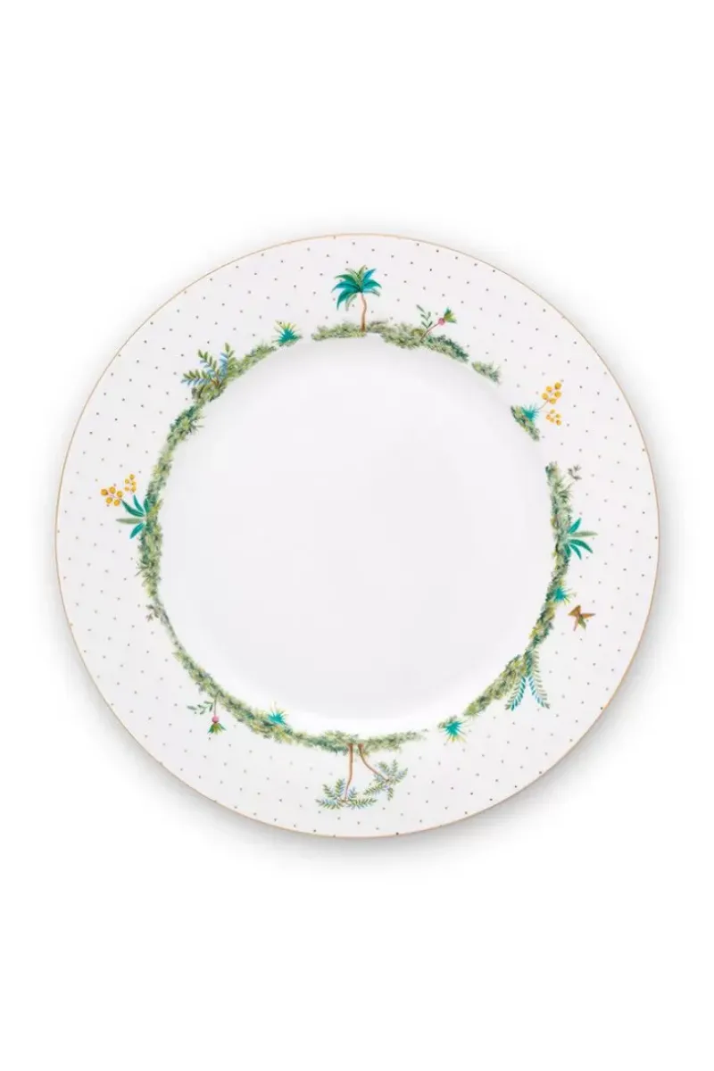 Ein Abendessen Mit Der Familie Oder Mit Freunden? Dieser Tiefer Teller Ist Perfekt Fur Die Vorspeise Geeignet. Der Tiefer Teller Hat Einen Weisen Hintergrund Mit Goldenen Punkten Und Ist In Der Mitte Mit Exotischen Pflanzen Dekoriert. Lasst Sich Perfekt Mit Den Anderen Tellern Der Jolie-Kollektion Kombinieren.