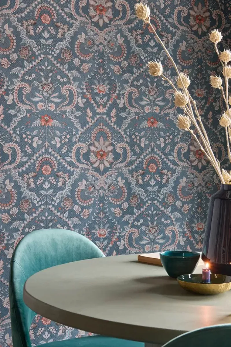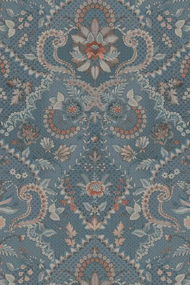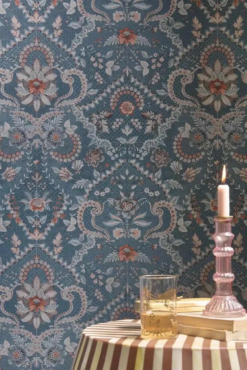 Gib Deinem Zuhause Ein Zauberhaftes Makeover Mit Der Wunderschonen Saluti Tapete In Der Farbe Denim Blau. Das Saluti Design Hat Ein Symmetrisch Aufgebautes Blumenmuster, Inspiriert Von Den Schonen Tapetenmotiven Aus Italien. Die Zarten Blumen Sind In Tonalen Farben Mit Einigen Farbakzenten Gemalt, Der Sich Gut Mit Dem Rest Der Pip Studio Kollektion Kombinieren Lasst. Die Saluti Tapete Ist In Verschiedenen Farben Erhaltlich: Grun Und Mauve. Dieses Design Ist Auf Vliestapeten Mit Einer Vinyl-Deckschicht Gedruckt.