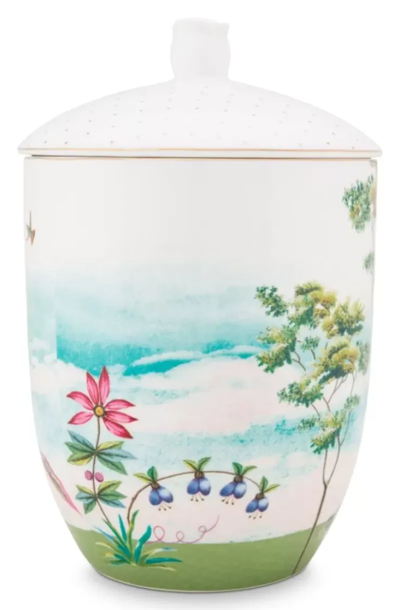 Dieses Schone Vorratsgefas Sorgt Fur Ein Naturliches Flair. Mit Dem Bewolkten Hintergrund Und Den Tropischen Pflanzen Konnen Sie Sich Vorstellen, Mitten In Der Natur Zu Sein. Auf Der Vorderseite Ist Ein Reiher Unter Einem Regenschirm Zu Sehen. Diese Tropische Stimmung Wird Mit Einem Weisen Deckel Und Bunten Blumen Kombiniert. Kombinieren Sie Dieses Vorratsgefas Mit Anderen Artikeln Unserer Jolie-Kollektion Fur Ein Umwerfendes Ergebnis.