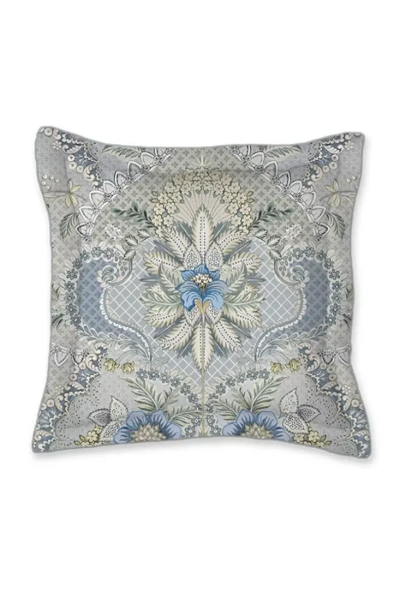Das Hellblaue Quadratische Saluti Grandi Kissen Hat Ein Symmetrisch Aufgebautes Blumenmuster, Inspiriert Von Den Schonen Tapetenmotiven Aus Italien. Die Ruckseite Hat Ein Muster Aus Weisen Und Blauen Querstreifen. Das Dekorative Kissen Hat An Den Seiten Eine Gesteppte Oxford-Kante, Die Ihm Einen Luxuriosen Look Verleiht. Sie Konnen Das Kissen Beidseitig Verwenden.